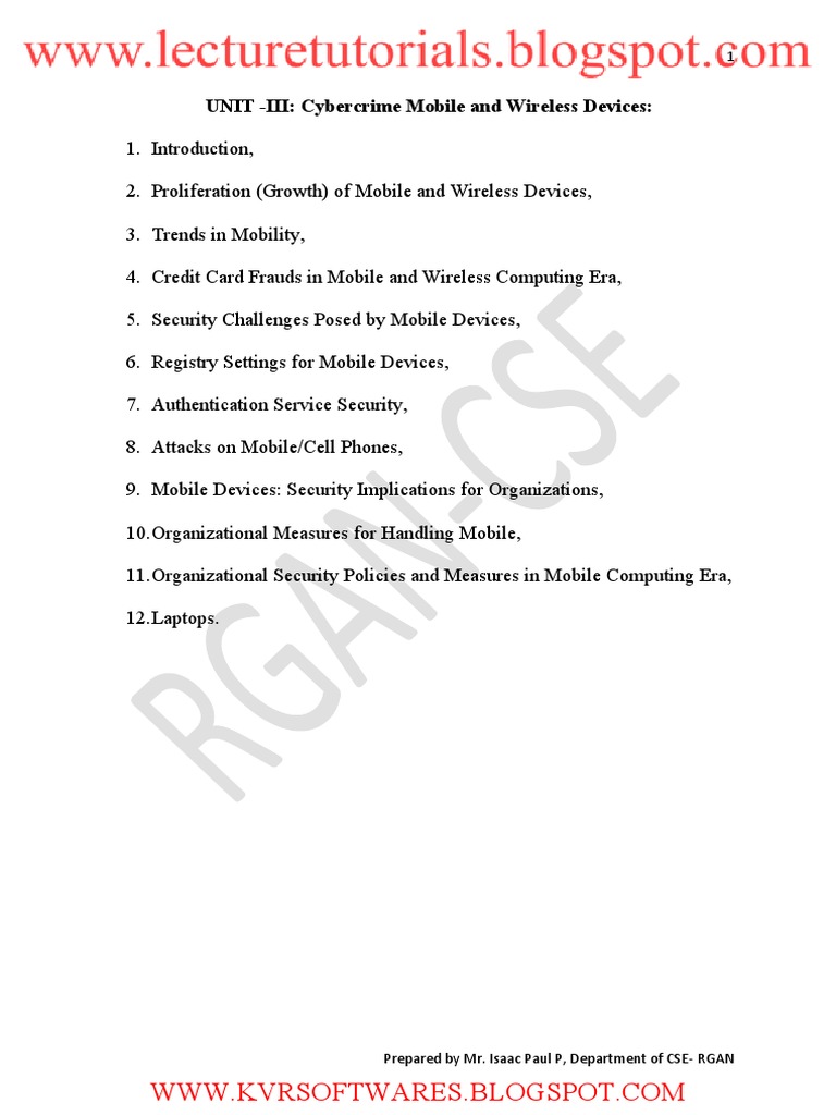 UNIT -III: Cybercrime Mobile and Wireless Devices: