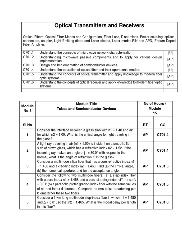 C701.5 Understand the concepts of optical transmitter and apply knowledge to modern fiber