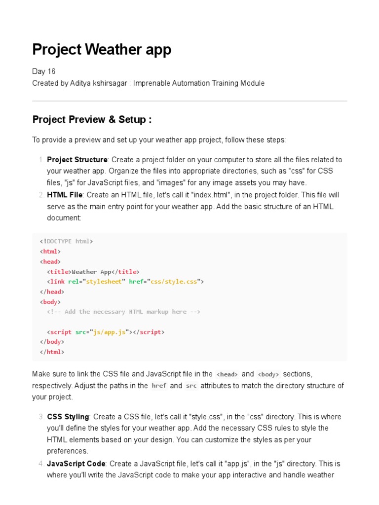 6. Preview: To preview your weather app, you can simply open the "index.html" file in a web