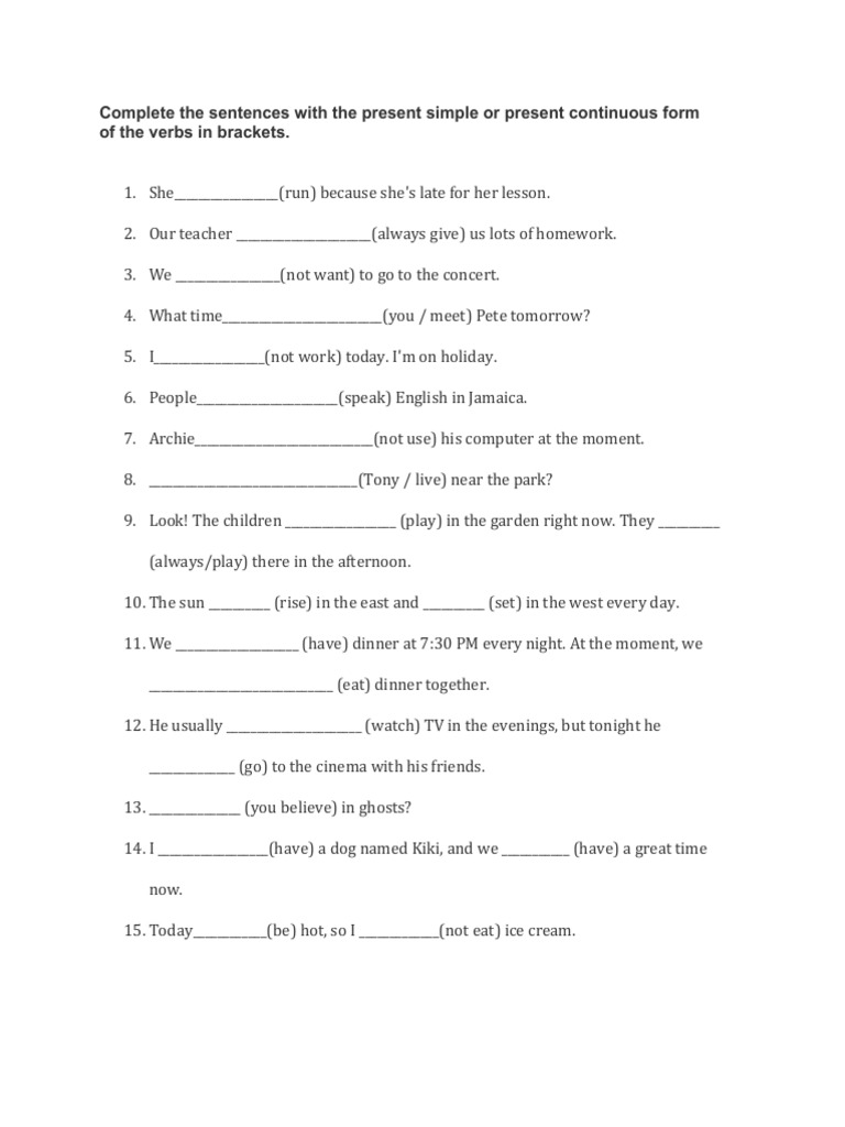 9. Look! The children __________________ (play) in the garden right now. They __________