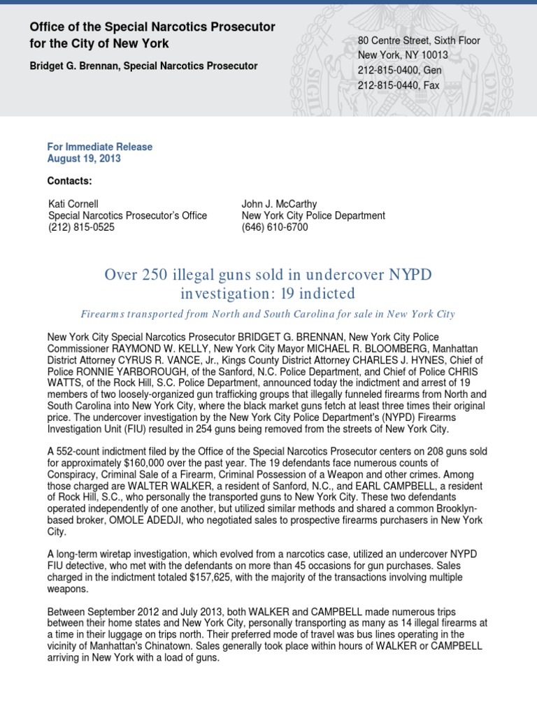 MICHAEL R. BLOOMBERG. “There is no doubt that the seizure of these guns – the largest bust in the