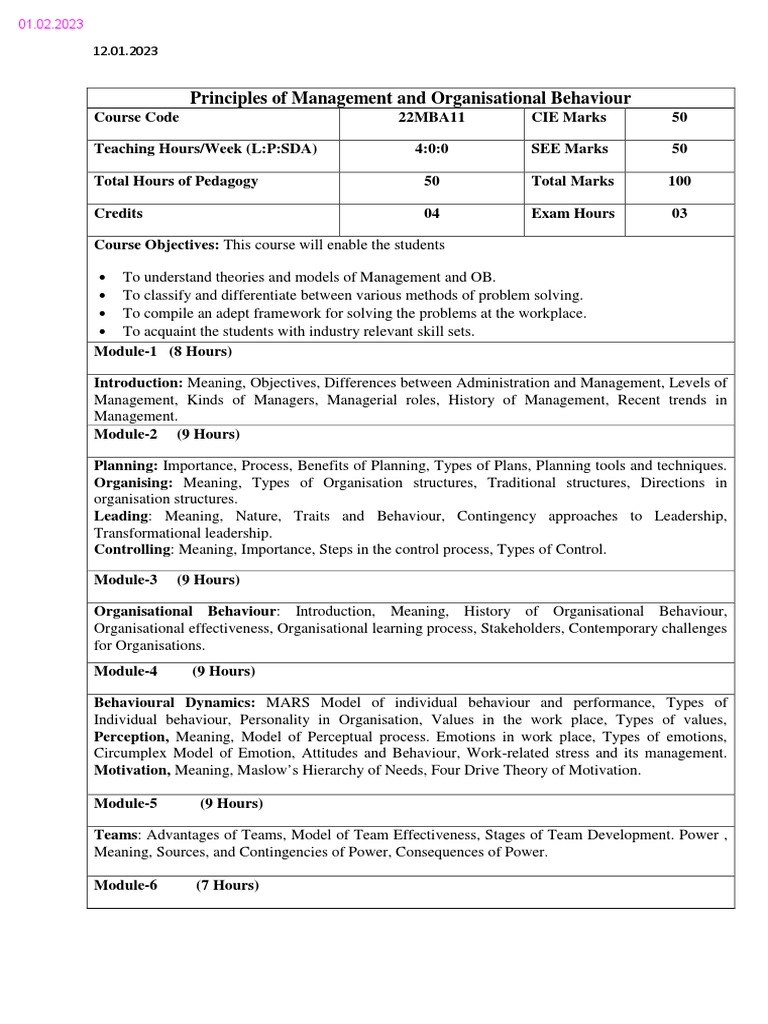of Business Administration course of the Institute (Batch), affiliated to Visvesvaraya