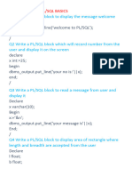 This document contains questions related to SQL queries and PL/SQL programs on sample relational schemas for employees, workers, sailors etc. It asks to write queries for retrieving, filtering, aggregating data from the tables and writing PL/SQL programs for operations like finding factorial, checking even-odd numbers, generating exceptions etc. There are around 14 sections with 4-5 questions in each section covering different types of SQL and PL/SQL concepts.