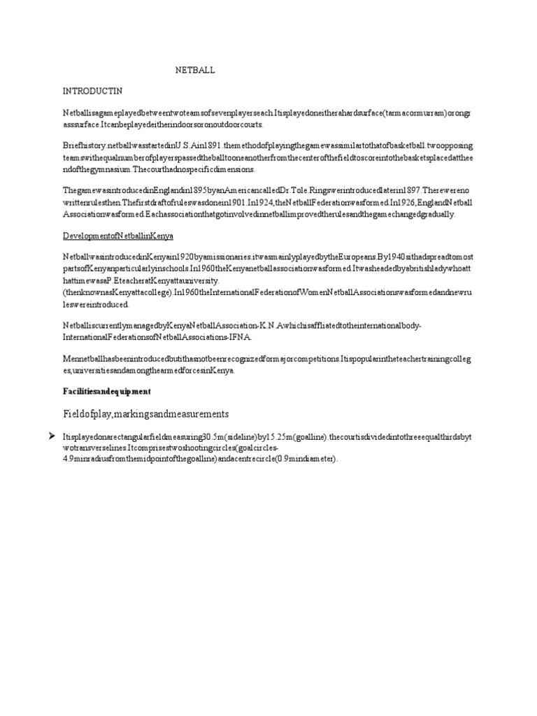 partsofKenyanparticularlyinschools.In1960theKenyanetballassociationwasformed.Itwasheadedbyabritishladywhoatt