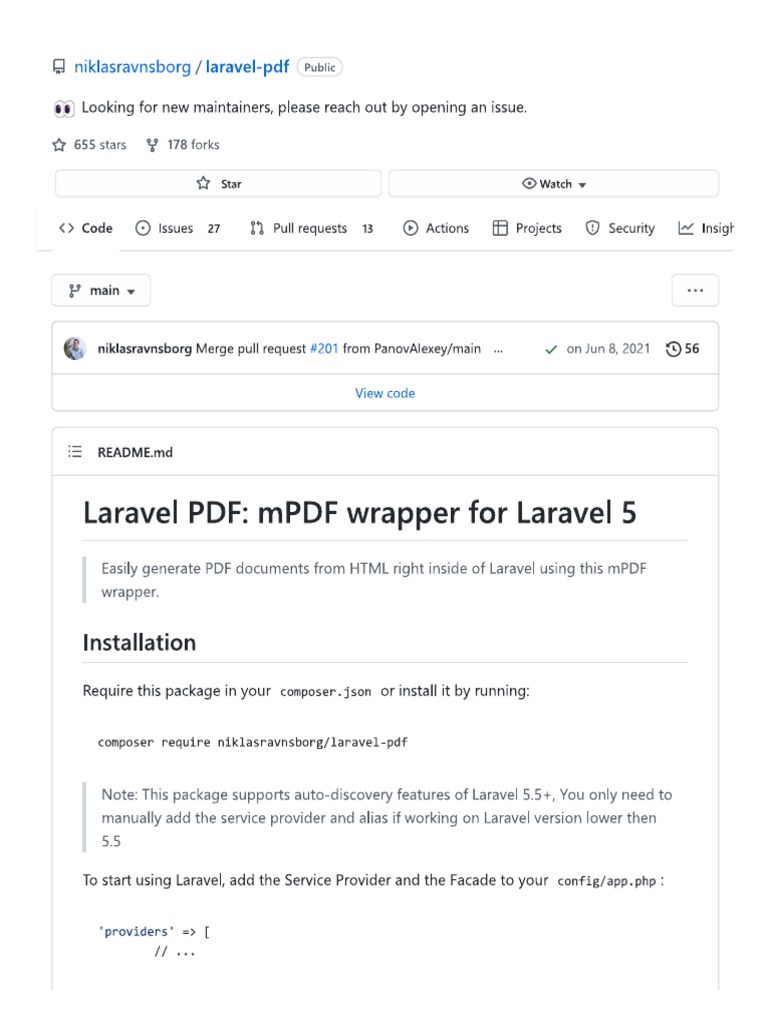 Laravel PDF is open-sourced software licensed under the MIT licenseReleases