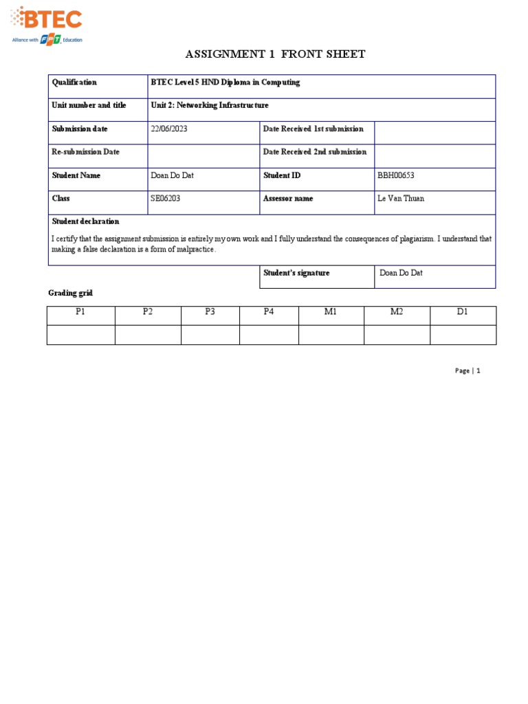 Networking Assignment1 Fontsheet 1