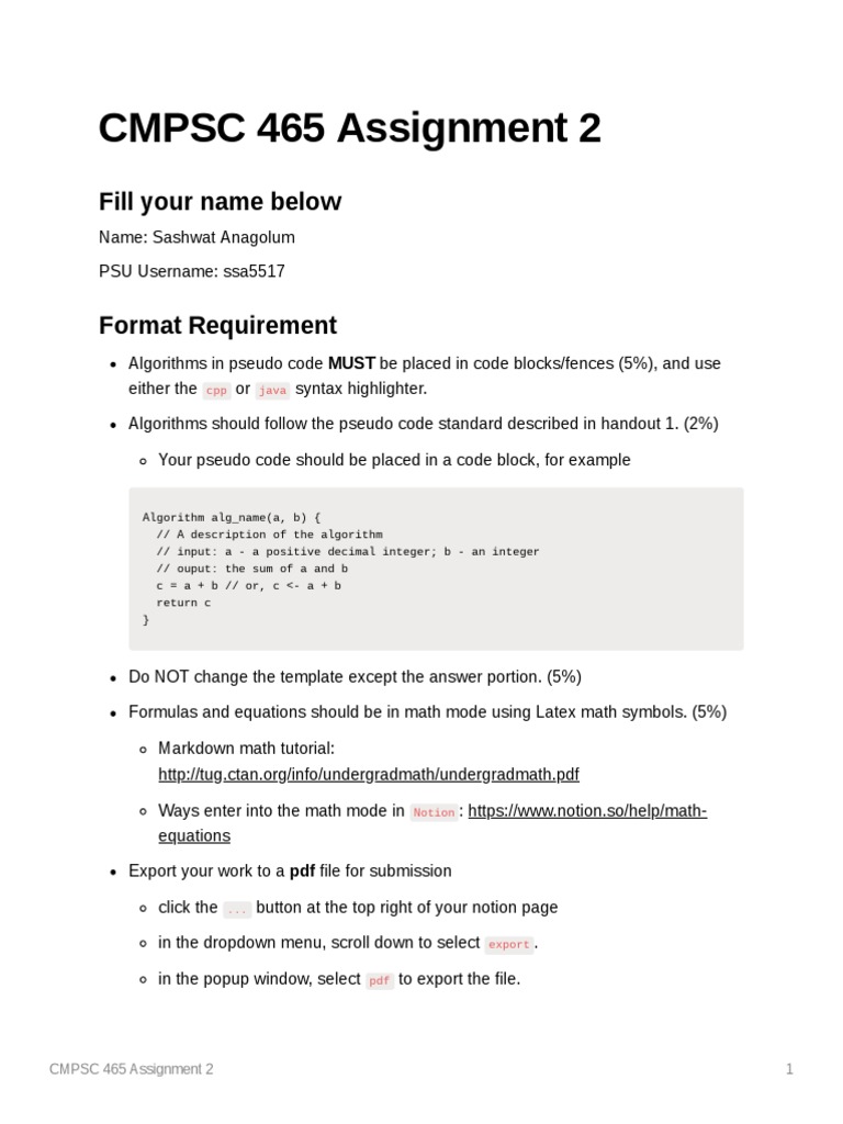 Algorithms in pseudo code MUST be placed in code blocks/fences (5%), and use