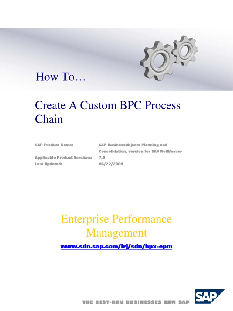 Withinthisscenario,wewillshowhowtocreateacustomBPCprocesschaininSAP BusinessObjectsPlanningandConsolidation,versionforSAPNetWeaver