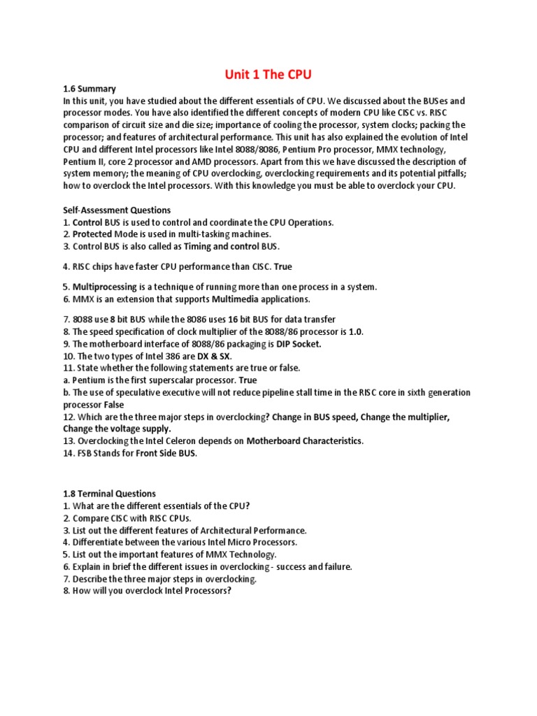 In this unit, you have studied about the different essentials of CPU. We discussed about the BUSes and
