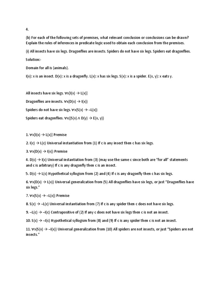 11. ∀x(S(x) → ¬I(x)) Universal generalization from (10) All spiders are not insects, or just “Spiders are not