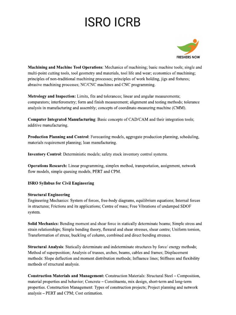 ISRO Syllabus for Civil Engineering