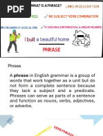 2.2. Phrase There are a number of source what we can refer to concern that study of phrase. Some of the ideas mentioned in the sources concerning phrase are quoted so that we can have a more complete understanding about phrase. A phrase is a group of two or more grammatically linked words without a subject and predicate (s.v. Phare). Examples : The house at the end of the street