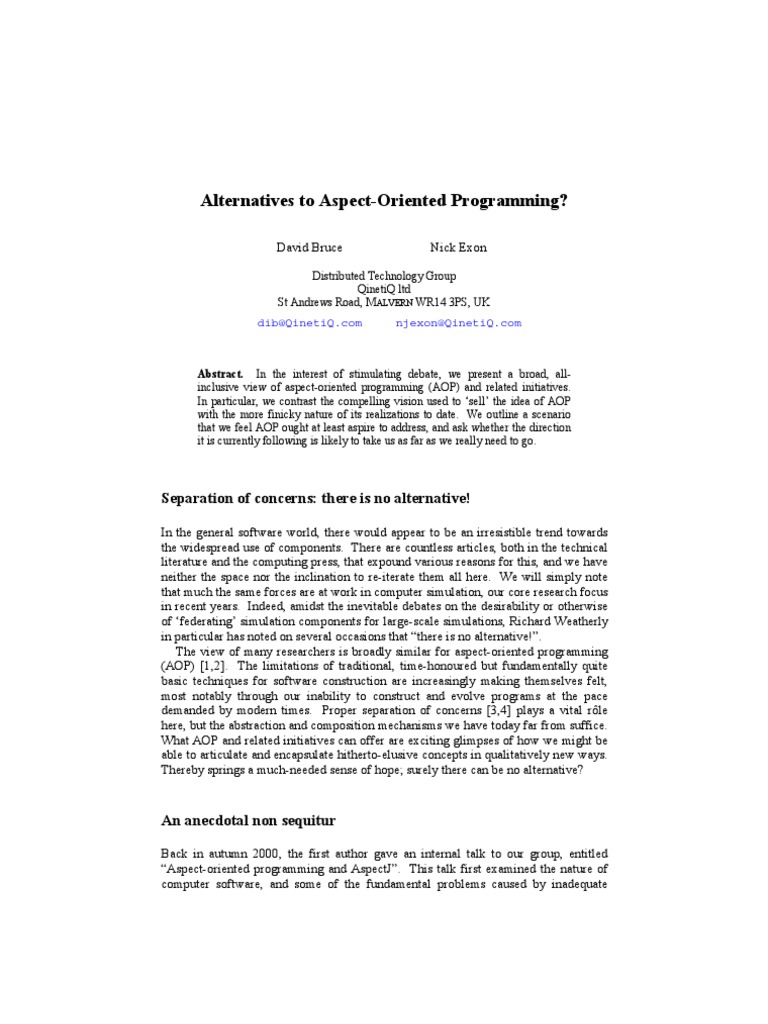 presentations on aspect-oriented programming. Our colleague David Allsopp offered