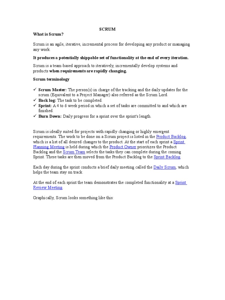 Scrum is an agile, iterative, incremental process for developing any product or managing