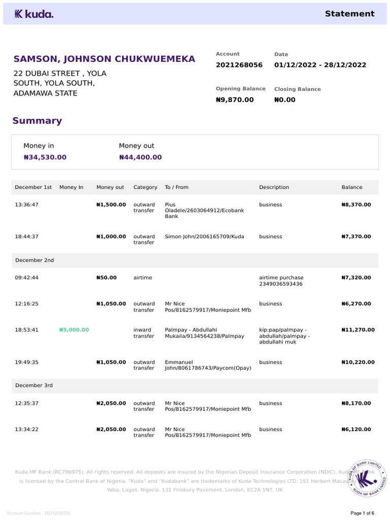 18:44:37 ₦1,000.00 outward Simon John/2006165709/Kuda business ₦7,370.00