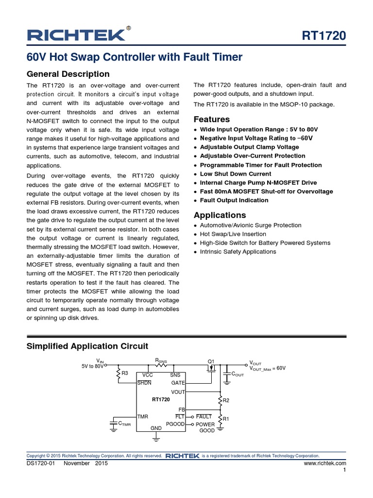 The RT1720 operates over a wide supply voltage approaches its drain voltage. This output signal can be