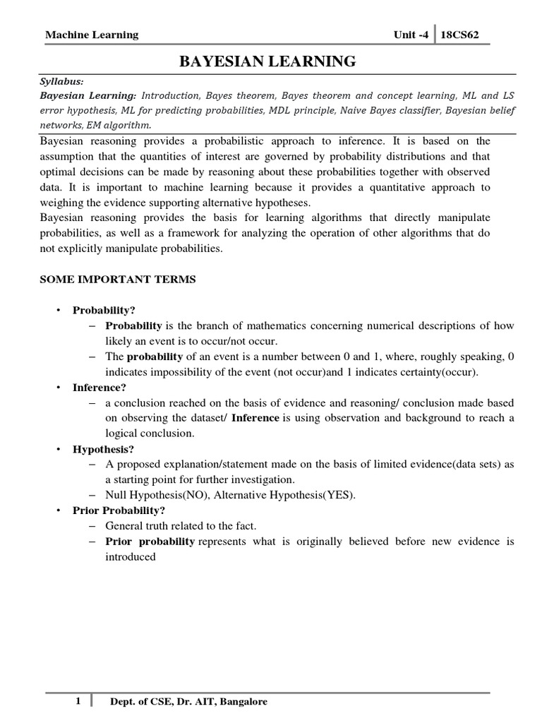 1. Define Bayesian theorem? What is the relevance and features of Bayesian theorem? Explain