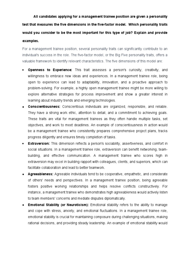of others' needs and perspectives. In a management trainee position, being agreeable