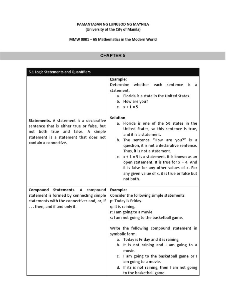 5.1 Logic Statements and Quantifiers