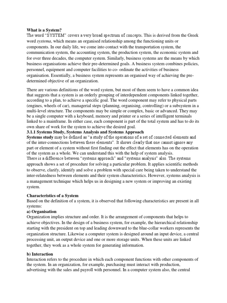 types of a system, etc. This unit provides an overview of systems, the components and activities