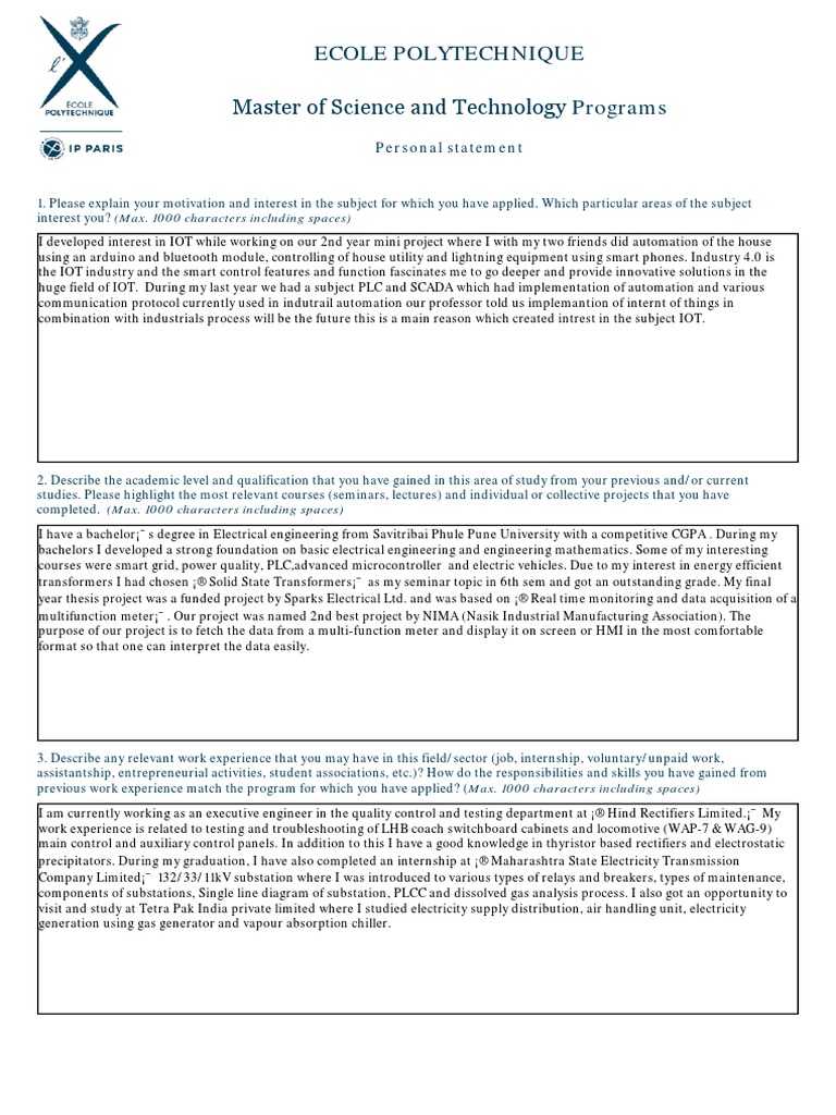 previous work experience match the program for which you have applied? (Max. 1000 characters including spaces)