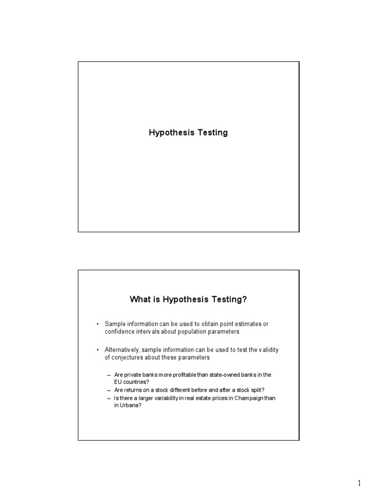– Null Hypothesis (H0): The null hypothesis is the hypothesis to be