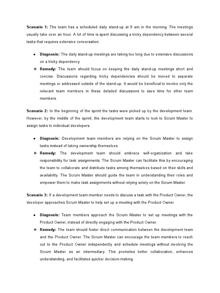 ● Diagnosis: Team members approach the Scrum Master to set up meetings with the