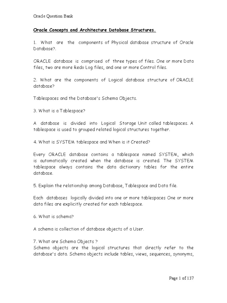 Every ORACLE database contains a tablespace named SYSTEM, which