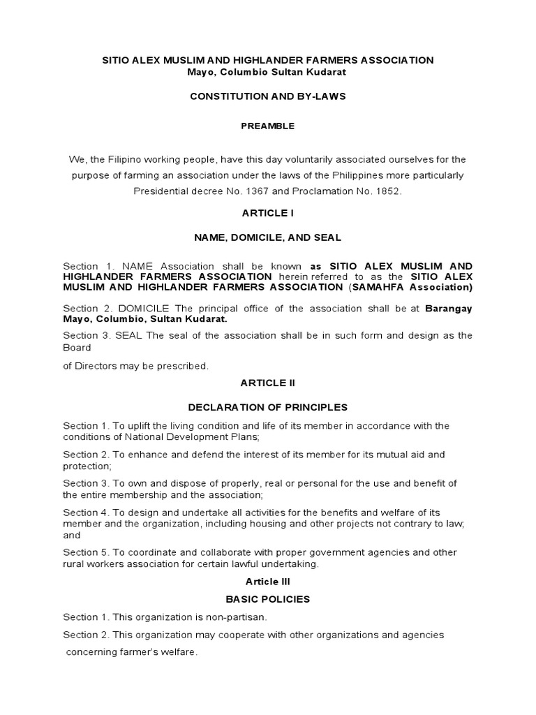 Section 1. NAME Association shall be known as SITIO ALEX MUSLIM AND