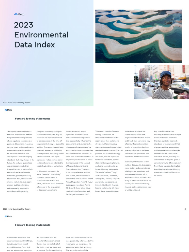 emissions (Scopes 1-3) 3. Meta’s methodology for calculating greenhouse gas emissions can be found on page 15.