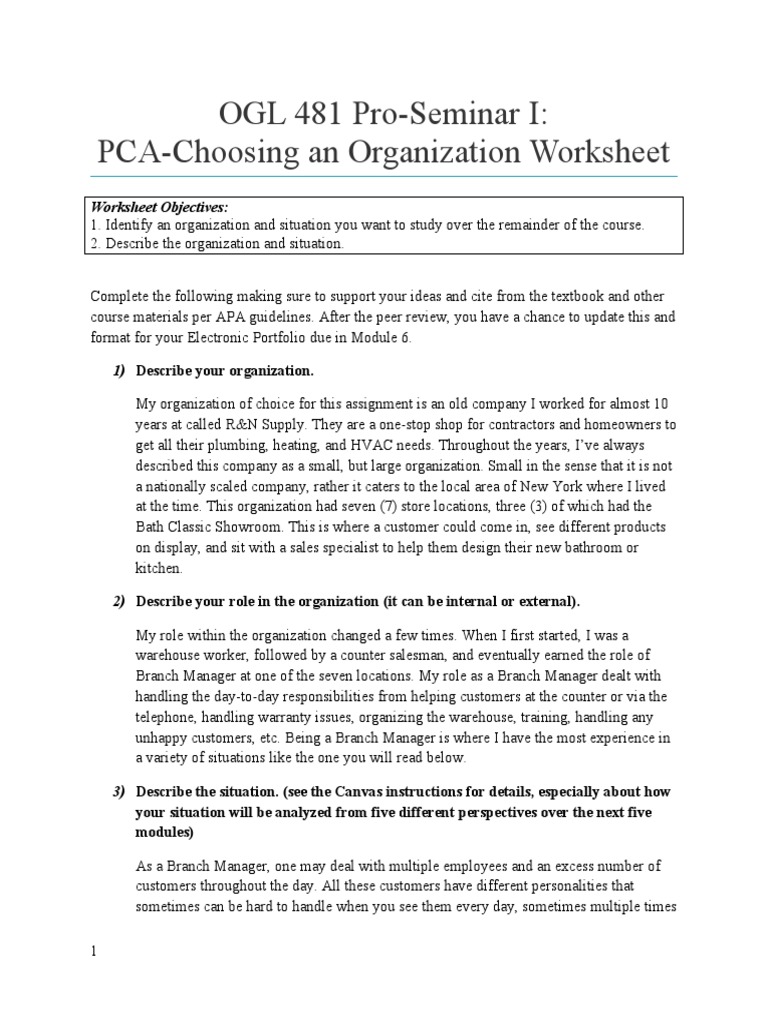 PCA-Choosing an Organization Worksheet
