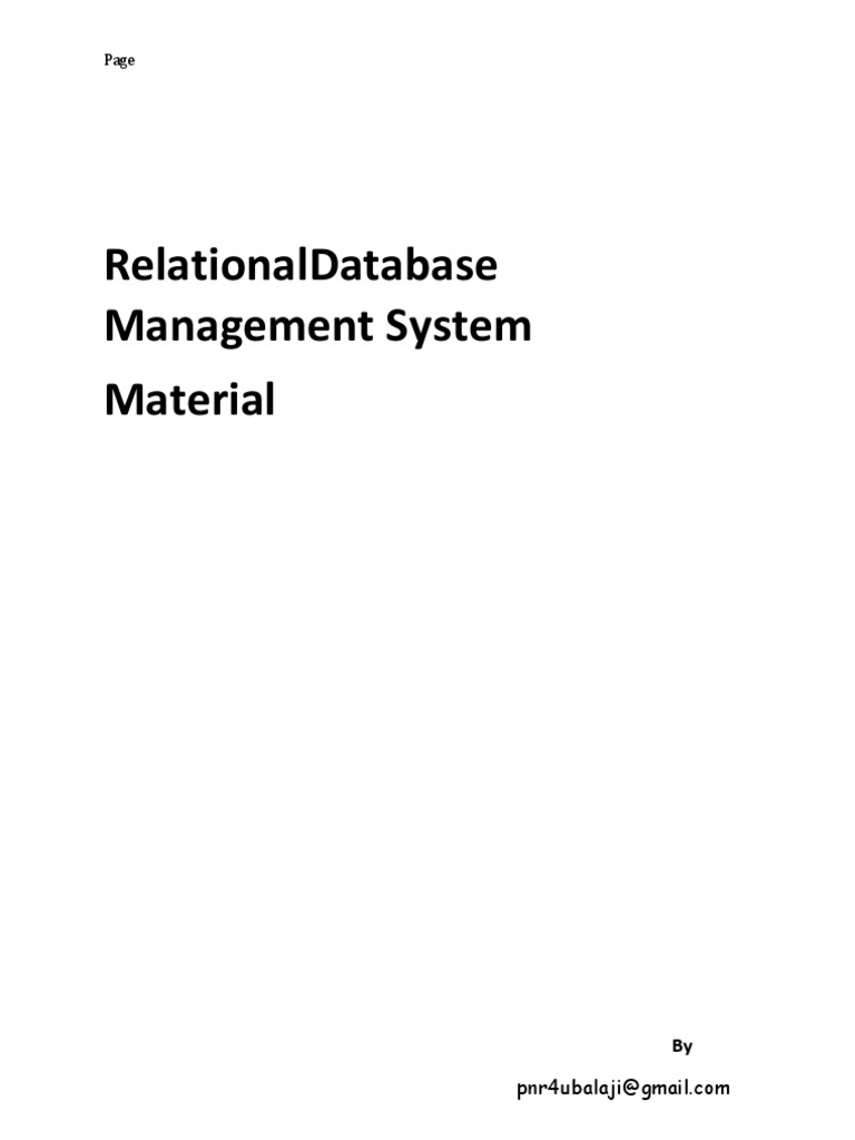 Page Emp_name varchar(10) - if you enter value less than 10 then remaining space cannot be deleted. it used total 10 spaces. Emp_name varchar2(10) - if you enter value less than 10 then remaining space is automatically deleted. UYTRE44. What is difference between RDBMS and DBMS? DBMS includes the theoretical part that how datas are stored in a table. It does not relate tables with another. While RDBMS is the procedural way that includes SQL syntaxes for relating tables with another and handling datas stored in tables. DBMS doesn't show the relation while RDBMS show the relation and moreover DBMS is for small organisations where RDBMS for large amount of data In DBMS all the tables are treated as different entities. There is no relation established among these entities. But the tables in RDBMS are dependent and the user can establish various integrity constraints on these tables so that the ultimate data used by the user remains correct. In DBMS there are entity sets in the form of tables but relationship among them is not defined while in RDBMS in each entity is well defined with a relationship set so as retrieve our data fast and easy. 45. Explain Codd's rule. In 1985, Edgar Codd published a set of 13 rules which he defined as an evaluation scheme for a product which claimed to be a Relational DBMS. And they are: Rule 1 : The information Rule. "All information in a relational data base is represented explicitly at the logical level and in exactly one way - by values in tables." Everything within the database exists in tables and is accessed via table access routines. Rule 2 : Guaranteed access Rule. "Each and every datum (atomic value) in a relational data base is guaranteed to be logically accessible by resorting to a combination of table name, primary key value and column name." To access any data-item you specify which column within which table it exists, there is no reading of characters 10 to 20 of a 255 byte string. Rule 3 : Systematic treatment of null values. "Null values (distinct from the empty character string or a string of blank characters and distinct from zero or any other number) are supported in fully relational DBMS for representing missing information and inapplicable information in a systematic way, independent of data type." If data does not exist or does not apply then a value of NULL is applied, this is understood by the RDBMS as meaning non-applicable data. Rule 4 : Dynamic on-line catalog based on the relational model. "The data base description is represented at the logical level in the same way as-ordinary data, so that authorized users can apply the same relational language to its interrogation as they apply to the regular data." The Data Dictionary is held within the RDBMS, thus there is no-need for off-line volumes to tell you the structure of the database. Rule 5 : Comprehensive data sub-language Rule. "A relational system may support several languages and various modes of terminal use (for example, the fill-in-the-blanks mode). However, there must be at least one language whose statements are expressible, per some well-defined syntax, as character strings and that is comprehensive in supporting all the following items