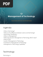Importance of managing technology Definition of management, technology and technology management Framework of technology management Role of firms in technology environment Key decisions in managing technology Process of managing technology Factors promoting technology management Technology classification
