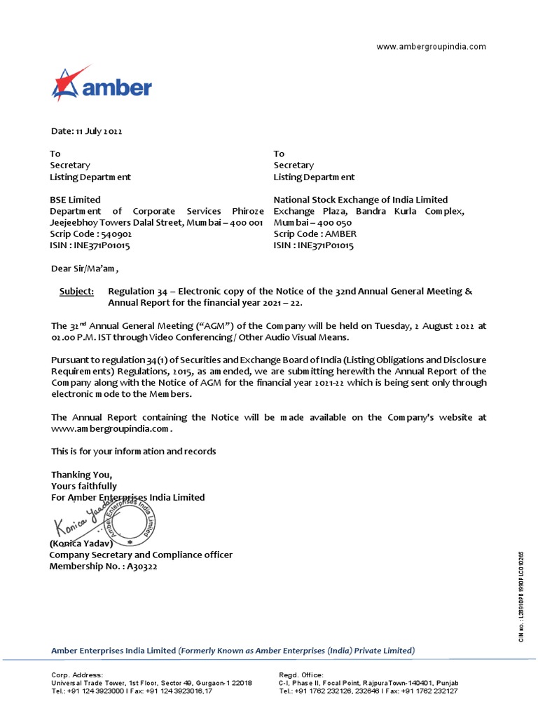 Amber Enterprises India Limited (‘AEIL’ or ‘Amber’ or ‘The