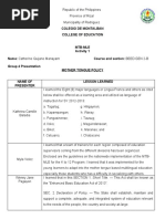 38. It refers to the learners’ mother tongue and presented in a matrix format at