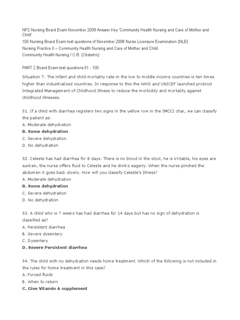 NP2 Nursing Board Exam November 2008 Answer Key 'Community Health Nursing and Care of Mother and