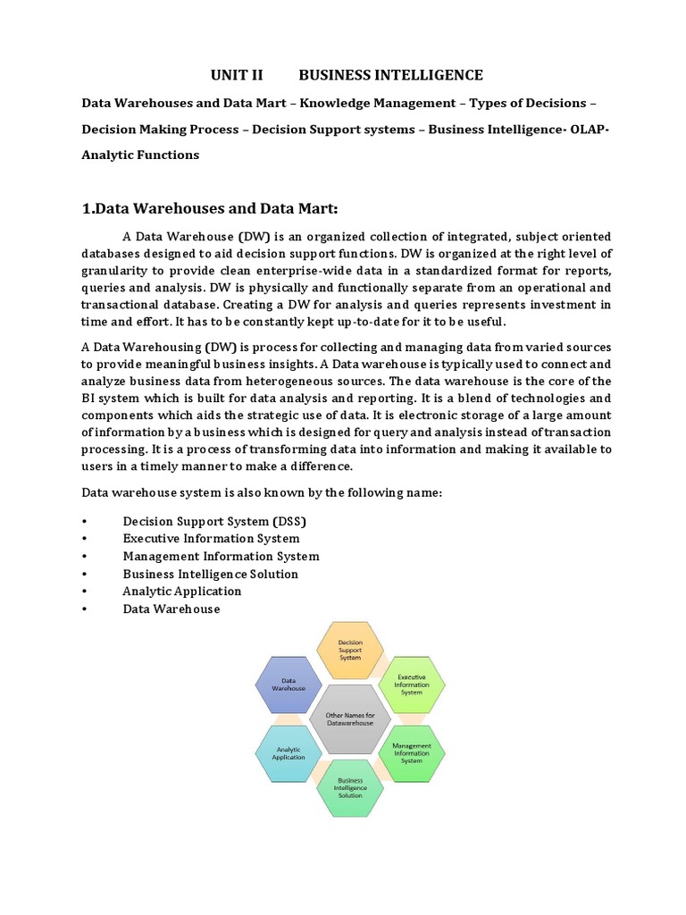 A Data Warehouse works as a central repository where information arrives from one or