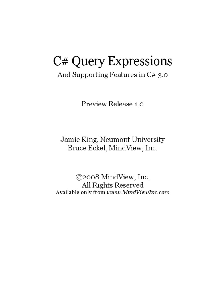 This book introduces experienced C# 2.0 programmers to version 3.0’s