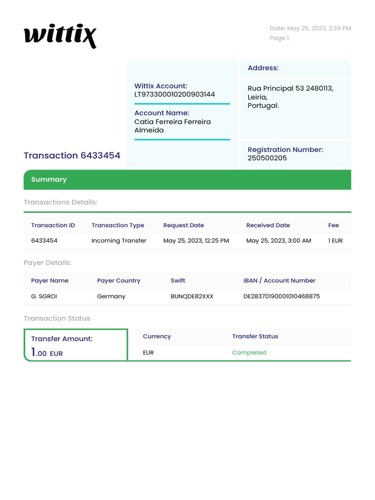 6433454 Incoming Transfer May 25, 2023, 12:25 PM May 25, 2023, 3:00 AM 1 EUR