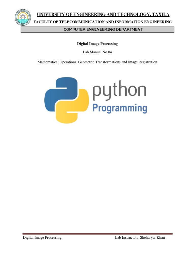 Digital Image Processing Lab Instructor:- Sheharyar Khan