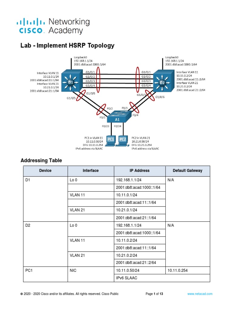 © 2020 - 2020 Cisco and/or its affiliates. All rights reserved. Cisco Public Page 2 of 13 www.netacad.com