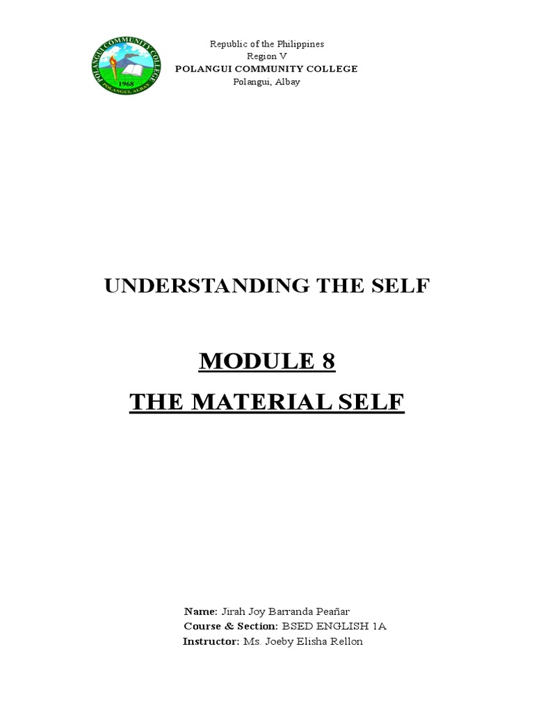 a. Body - According to James (1980), the body is the innermost aspect of the material self. Also, you