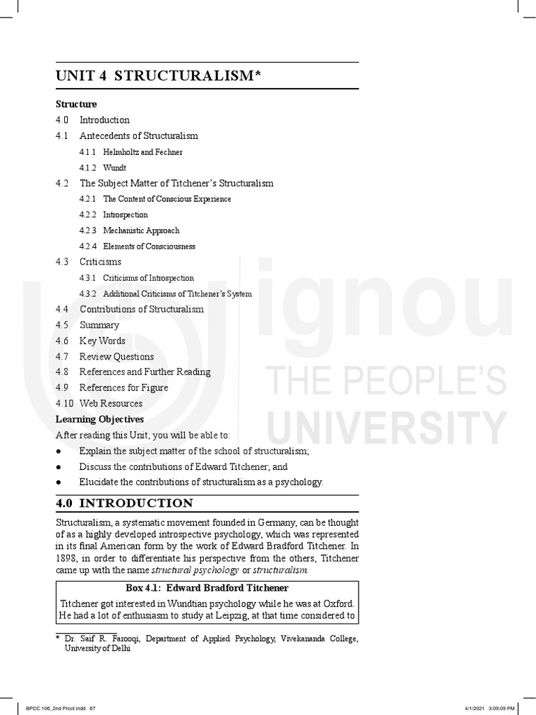 structuralism and not mention Wundt or Wundtian psychology. Wundtian