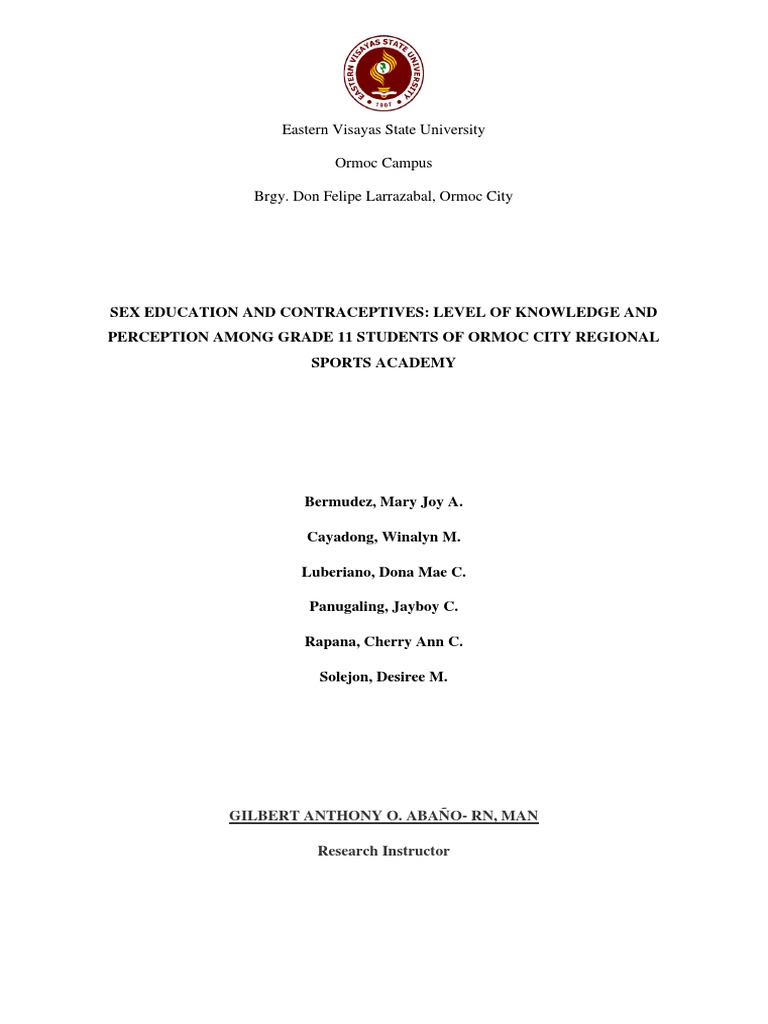 Sex Education and Contraceptives among Grade 11 students of Ormoc City Regional Sports