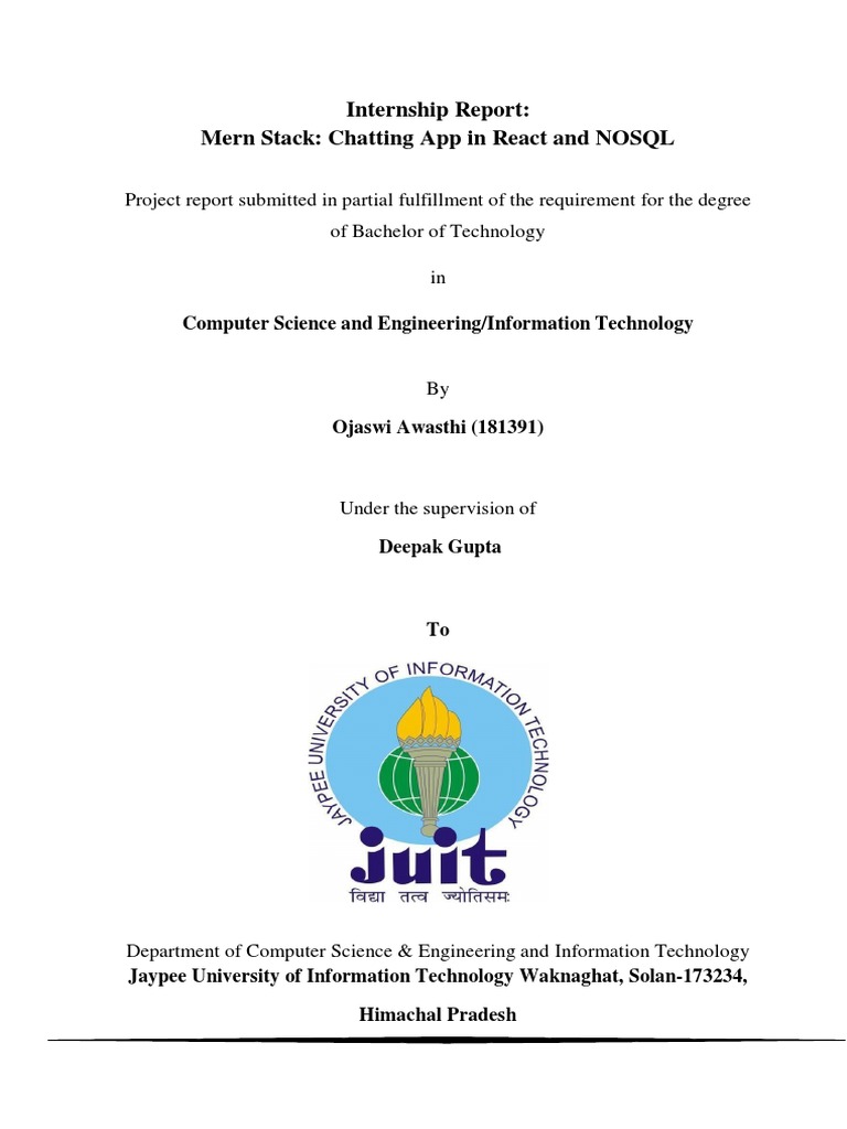 I hereby declare that the work presented in this report entitled “MERN Stack: Chatting