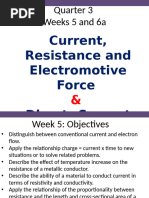 Current (I) is defined as the rate of flow of electric charge in a conductor. The