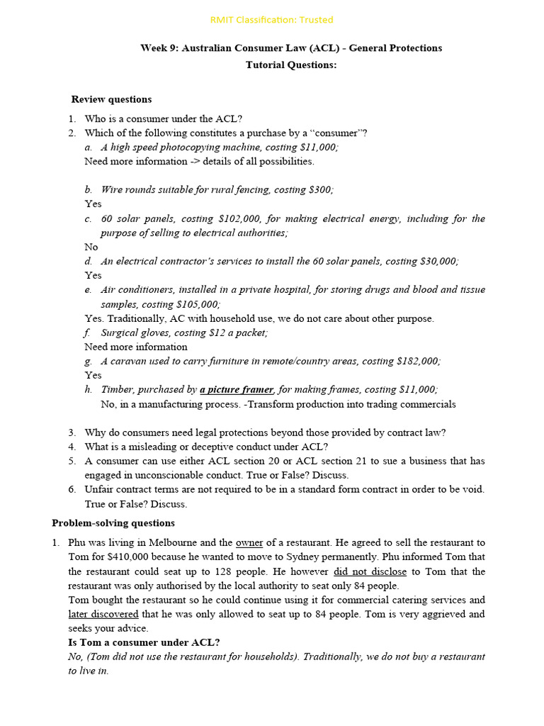 Week 9: Australian Consumer Law (ACL) - General Protections