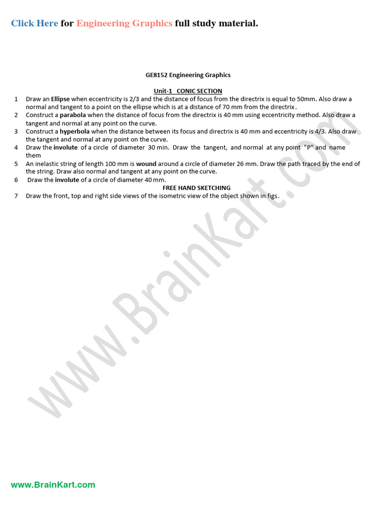 1 Draw an Ellipse when eccentricity is 2/3 and the distance of focus from the directrix is equal to 50mm. Also draw a