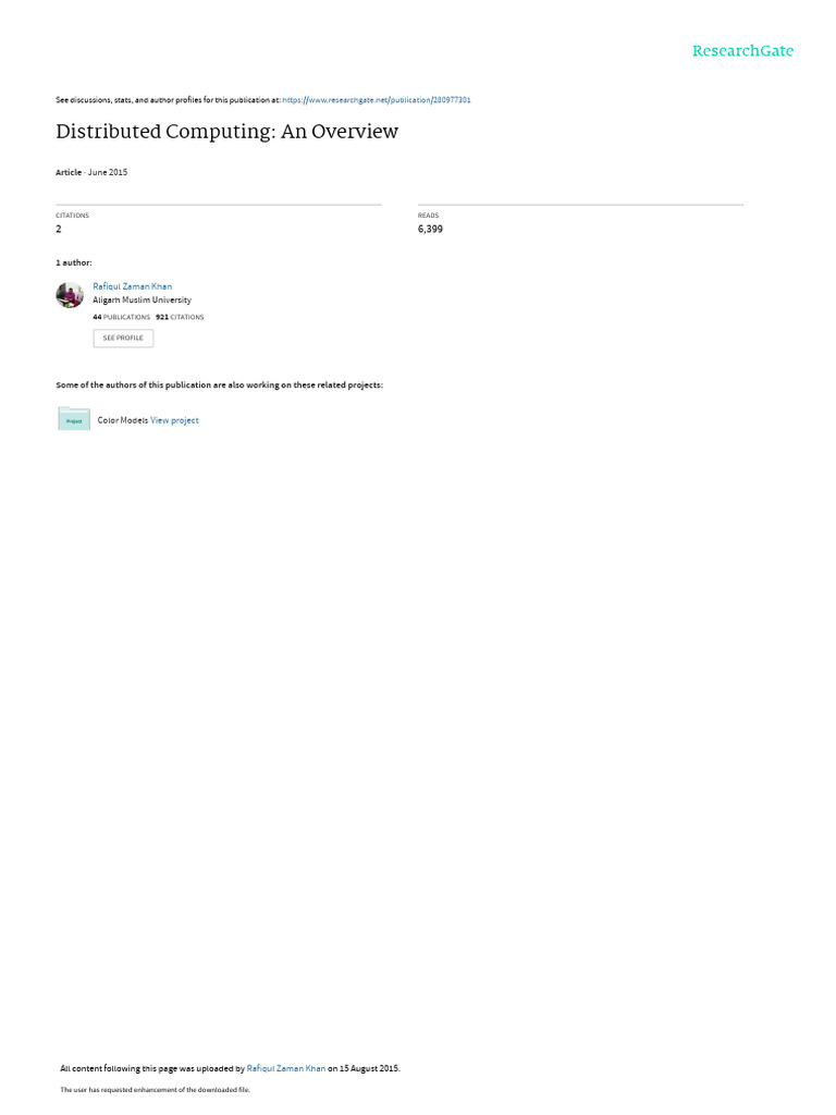 in Distributed Computing, International Journal of Dr. Rafiqul Zaman Khan
