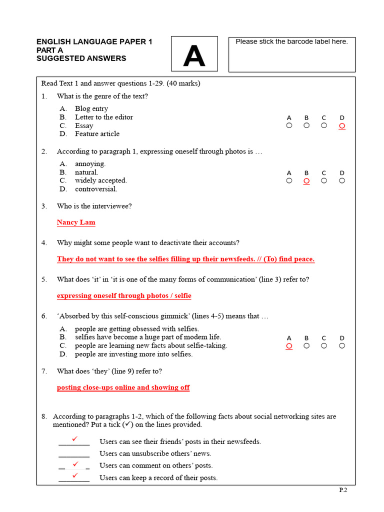ENGLISH LANGUAGE PAPER 1 Please stick the barcode label here.
